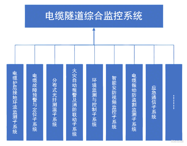 電纜隧道綜合監(jiān)控系統(tǒng)包含護層接地環(huán)流監(jiān)測、電纜故障預警與定位、分布式光纖測溫、火災自動報警及消防聯(lián)動、環(huán)境監(jiān)測與控制、安防視頻監(jiān)控、電纜振動防盜割、應急通信等多個子系統(tǒng)。通過多個子系統(tǒng)之間的相互協(xié)作,對隧道內的電纜設備、環(huán)境狀況、安全防護等方面施行全面監(jiān)控,能夠及時發(fā)現(xiàn)并預警潛在的安全隱患,確保電纜隧道在各種復雜條件下都能可靠運行,為電網的穩(wěn)定供電提供堅實支撐。